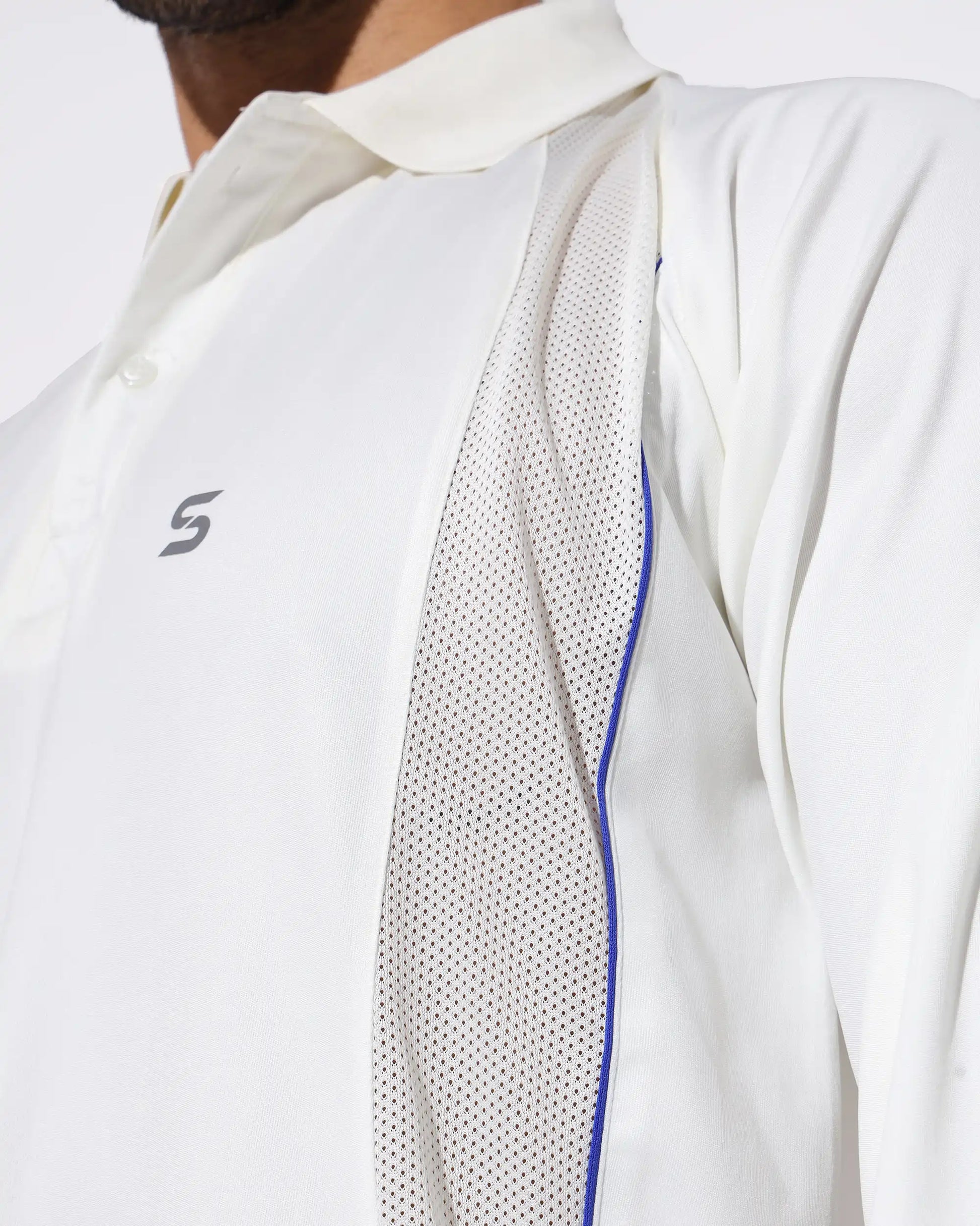 Breathable Mesh Panels: Strategically placed mesh on the sides ensures enhanced ventilation, keeping you cool even during long innings.